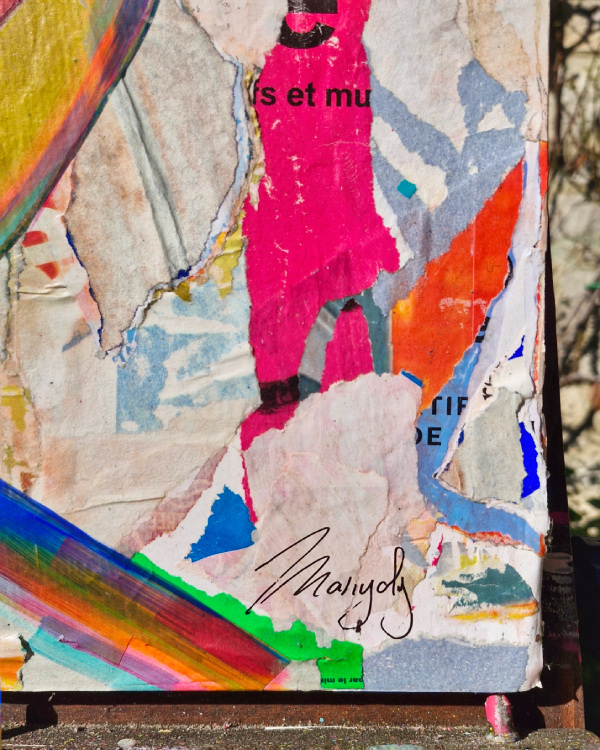 Ce tableau a voyagé aux quatre coins de la France pour plusieurs expositions avant de revenir, il y a quelques semaines, à l’atelier. Ce que l’on ne raconte pas, c’est qu’au cours de ses nombreux déplacements, il a vécu des aventures : chutes, transports hasardeux, souvent sans protection. À son retour, il avait besoin de panser ses blessures. Après des retouches et des ajustements de couleurs, il rayonne aujourd’hui dans toute sa splendeur. Chaque œuvre a son heure.